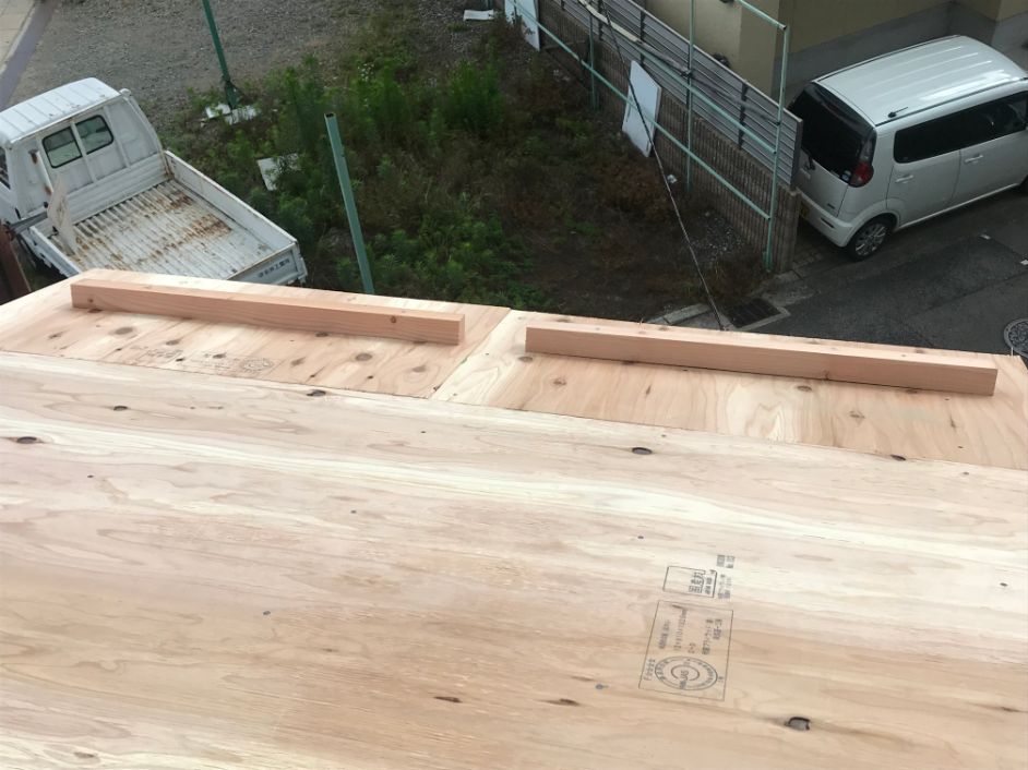 今回は屋根の構造上、垂木の足元が浮いてしまったので、そこに切り落とした垂木を土台にして高さを確保しました。