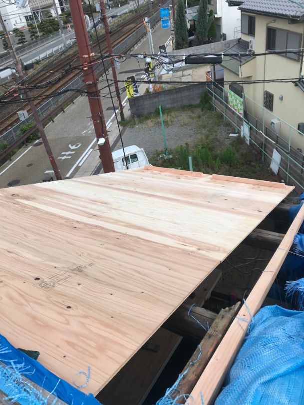 1列分の野地板を張り終えました!!かなり疲れました…。
